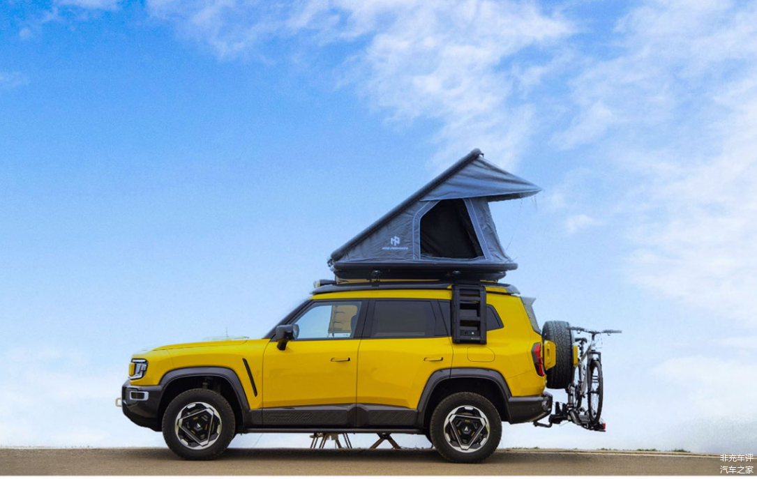 外观就是“先锋装甲”风格,看着挺man,线条硬朗。车顶行李架还能带原厂灯,有点意思。颜色选择多,名字都挺有诗意。