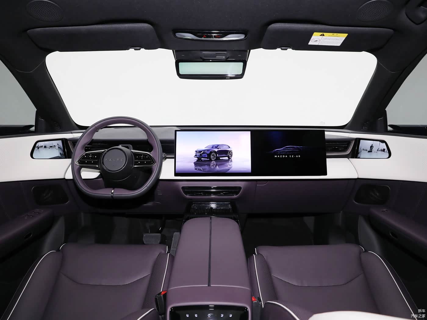 马自达将在中国市场投放的第二款新能源车型EZ-60的内饰近日曝光。从图片来看,其内饰采用了双拼色,搭载了类似理想L系列同风格的一体式屏幕,尺寸非常大,达到26.45英寸,分辨率达5K级别。新车还取消了仪表盘,改用HUD替代。EZ-60全车一共有23扬声器,支持7.1.4杜比全景声,还将配备头枕音响,减少导航与音乐播放之间的干扰。