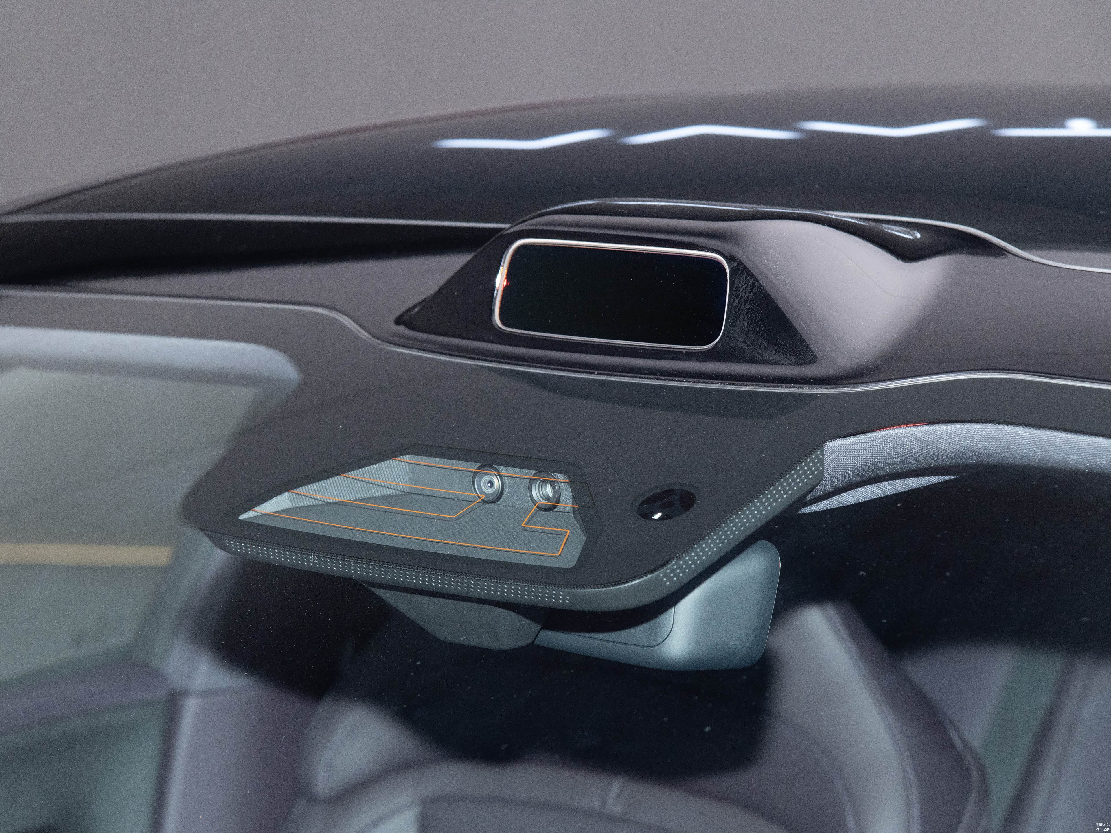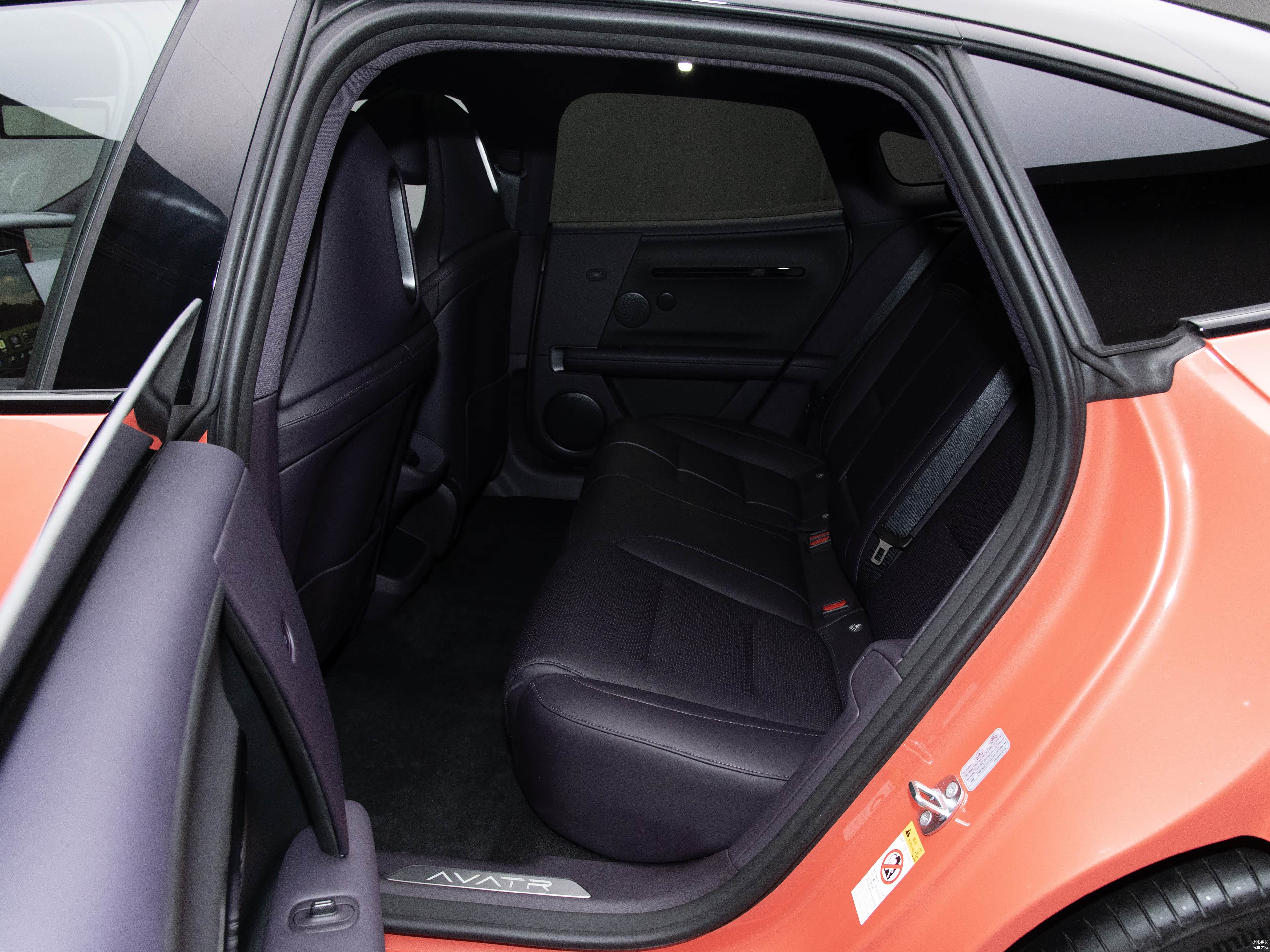 车尾则类似缩小版的阿维塔12,尾部末端有小尾翼设计,无后舷窗式溜背设计,顶部还有流媒体后视镜摄像头,配备分段式尾灯、可点亮车标,点亮后很有辨识度,后包围采用黑色装饰,很突出运动感。