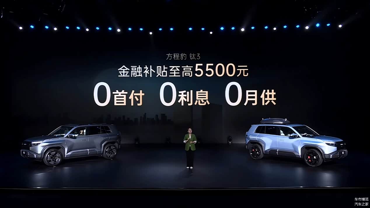 其次,钛3还带来了至高5500元金融贴息政策,并提供了“0首付”“0利息”“0月供”的多重金融方案以供选择。“0首付”,至高5年超长贷;“0利息”,首付50%起,24期0息;“0月供”,首付50%尾款50%,至低1年0利息0月供。
