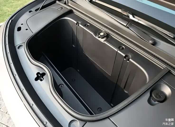 在实用性上,该车前备厢容积达到92L,目测可以容纳一个成人坐在里面。前备厢不仅设计巧妙,同时还能分层储物,配备排水功能,大大提升了储物的实用效果。