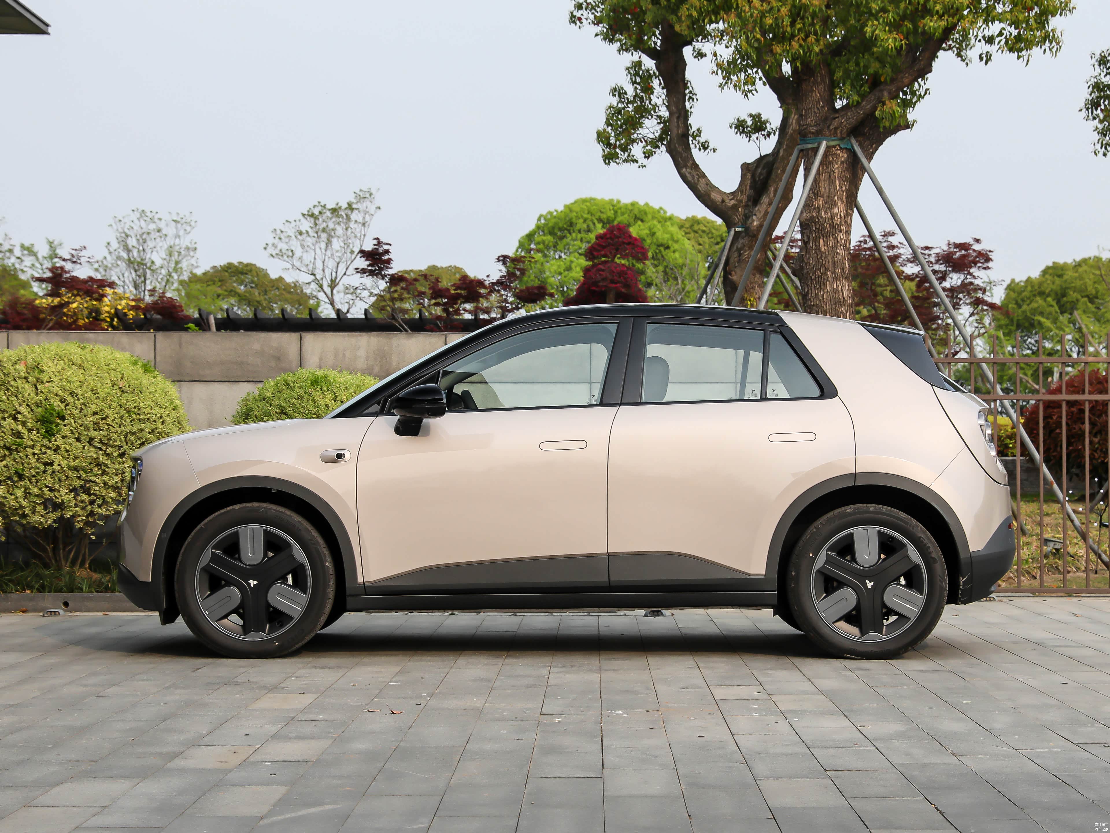 车身侧面下包围采用黑色环保复合材料,蚌式尾门与后灯灯组形成连贯切面,兼具独特的造型表达和空气动力学效能。车身尺寸方面,新车长4003*1781*1557mm,轴距为2615mm。全新多辐式轮圈让其看上去十分精致。