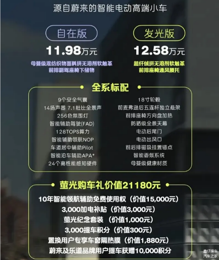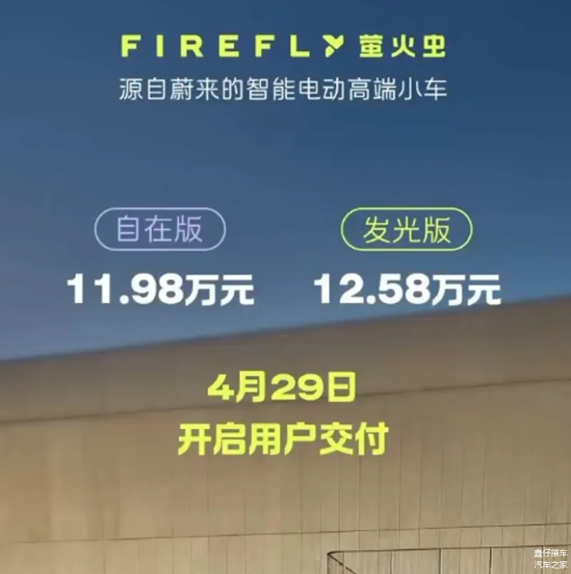 4月19日,蔚来第三品牌firefly萤火虫旗下首款车型firefly萤火虫正式上市,售价区间11.98-12.58万元,新车将于4月29日开启用户交付。 值得一提的是,firefly萤火虫将共享蔚来销售网络,上市初期将在用户比较多的城市建立示范运营站,后续将接入NIO五代换电站,融入NIO换电体系。