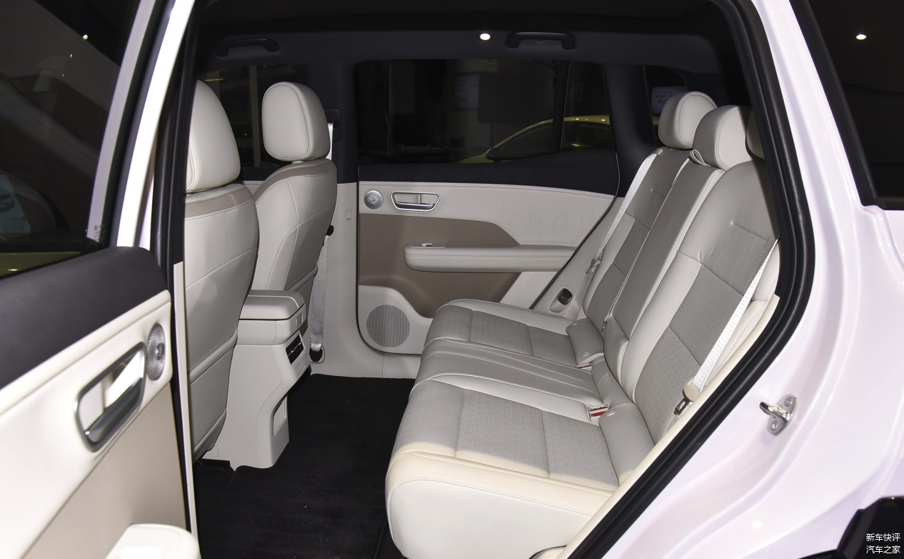坐进后排的第一感受就是空间感远超预期。以笔者170cm的身高实测,后排腿部空间达到惊人的三拳以上,头部空间也有一拳半的余量。更夸张的是,后排高度足够让7岁儿童完全直立,这在同尺寸车型中几乎是不可能完成的任务。这种空间表现主要得益于两点:一是电池布局的优化,将厚度控制在合理范围;二是座椅设计的创新,通过减薄椅背等方式偷出更多实用空间。
