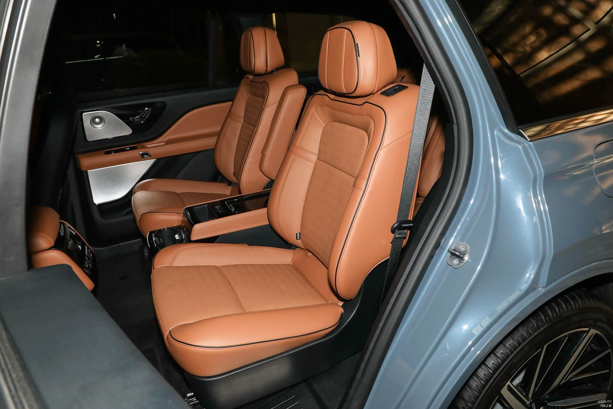 因为车身尺寸和轴距都比较大,所以车内的空间很宽敞,分别提供了6座和7座布局设计,其中6座车型的第二排为两张独立的座椅,具有一定的商务属性,而且座椅中间的过道方便第三排乘客上下车,而7座车型的第二排为三人座椅,平时可以当作一台5座车型使用,提升后备箱的储物空间,在林肯飞行家上除了配备了双层夹胶玻璃之外,还具有主动降噪功能,坐在车内如同高铁一样安静。