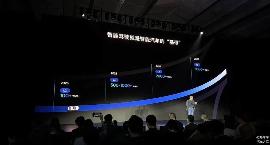 余凯也给出了时间表,算力 500 - 1,000+ TOPS 的 L3 将在 2028 年普遍落地,2030 年则是 2,000 TOPS 以上的 L4 落地,十年后的 2035 年,则是 5,000+ TOPS 的 L5 级自动驾驶落地。