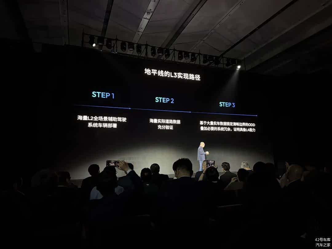 地平线要实现 L3,其实也得分三步走:第一步,海量搭载 L2 全场景辅助驾驶系统车辆部署;第二步,海量实际道路数据充分验证;第三步,基于大量的实车数据锁定清晰边界的 ODD,叠加必要的系统冗余,证明具备 L4 的能力。