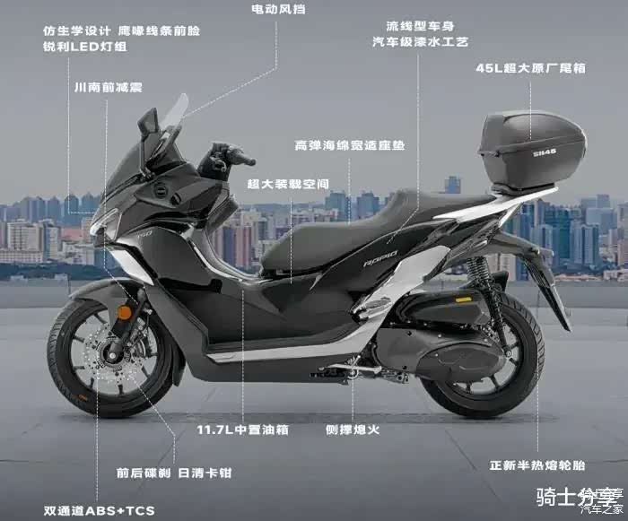 另外它对于整车的运动化外观也有很好的衬托作用,毕竟脊梁造型也是运动巡航踏板车的一大特点,如果中间空起来多多少少还是会让动感姿态差点意思。