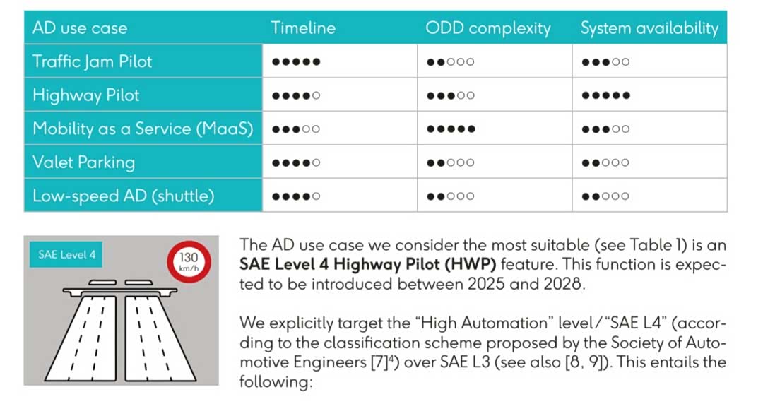 以SAE L4级高速公路领航辅助(HWP)作为分析用例,代表2025-2028年间具备商业化前景的自动驾驶技术。