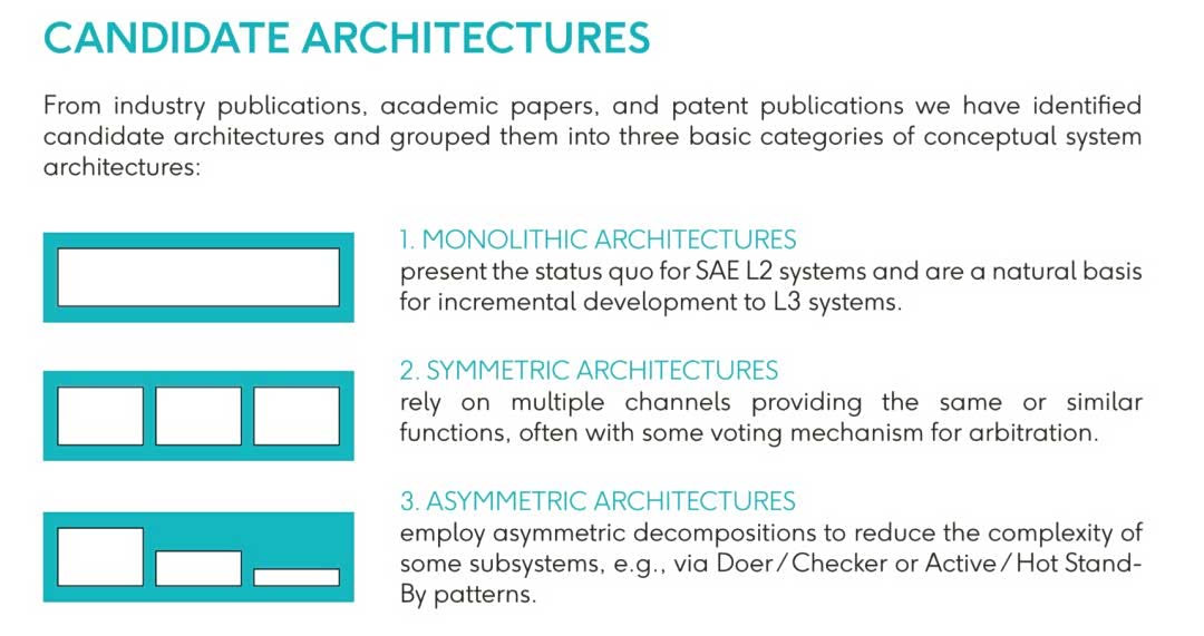 读完这份报告以后,还是很有价值的。通过对单通道、对称及非对称架构的系统性分析,揭示其在功能安全(FuSa)、预期功能安全(SOTIF)、可用性及可扩展性等方面的表现。