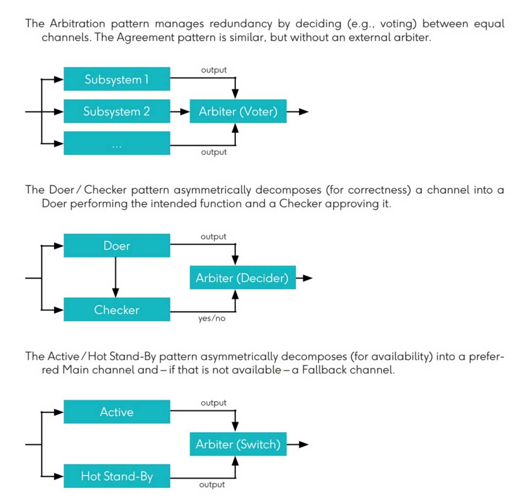 ◎ 层式DCF架构:在感知、决策、执行各层引入Doer/Checker对,形成多层冗余。例如,感知层采用主激光雷达与备用摄像头校验,决策层通过异构AI模型比对输出,增强系统鲁棒性。