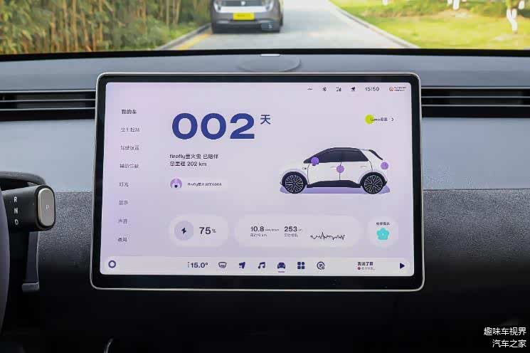 内饰方面,萤火虫内饰提供惬意紫、松弛绿、温暖米、沉静黑四种配色方案,中控台区域整体呈现简洁设计风格,标配 6 英寸全液晶仪表和 13.2 英寸中控屏,信息读取便捷。空调出风口位于中控台远端,并应用了贯穿式造型,美观又实用。车内采用全新 aster OS 车机系统,搭载高通骁龙 SA8155P 芯片,配合与蔚来 NOMI 类似的 “lumo” 双音区智能语音助手,操作流畅,交互体验出色。