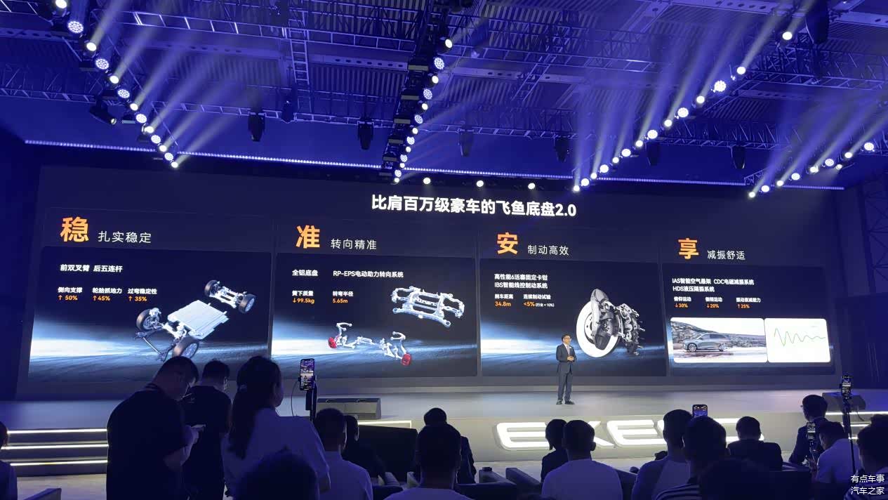 此外,新车还配备了飞鱼底盘2.0。在硬件方面配备了前双叉臂式+后五连杆式独立悬架,并配有CDC电磁减振系统,高配版本上还有空气悬架。