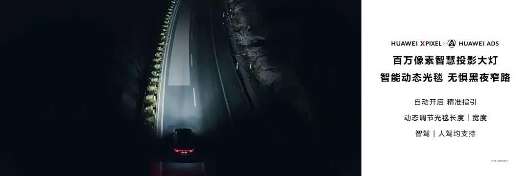问界 M8 搭载华为百万像素智慧投影大灯,与ADS融合可实现自主智能照明。创新动态光毯,智驾人驾多场景支持,弯道变道,精准跟随,识别窄道,自主示宽。