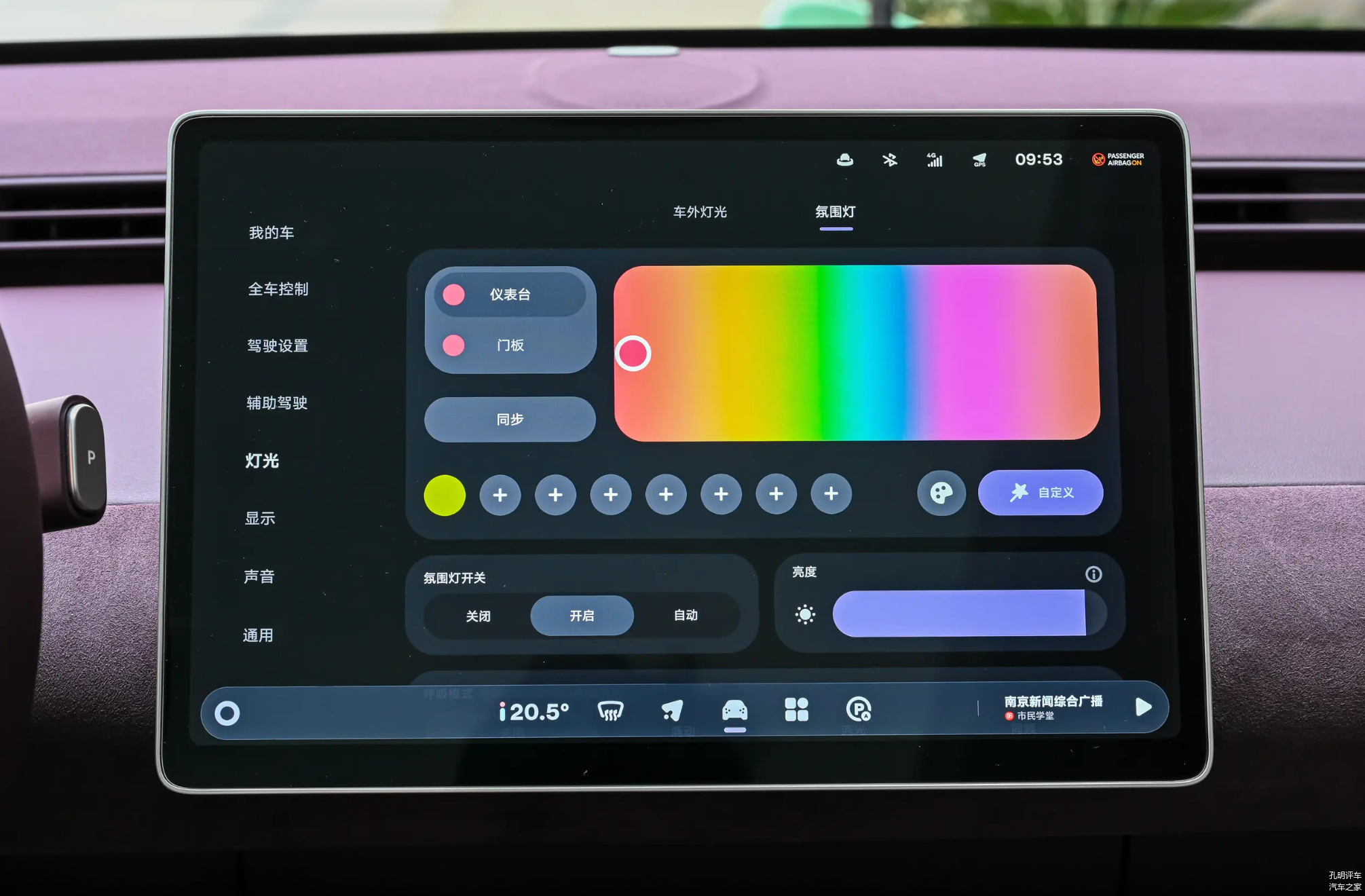 因为打开车门之后确实能够感受到比较高级的精致感,放在同级别领域对比是有优势的,就比如内饰直接提供了14个扬声器,这样一款小车已经实现了杜比全景声效果,而且功放的输出功率可以做到640万,影响效果就很出乎意料,甚至全系标配了256色氛围灯。
