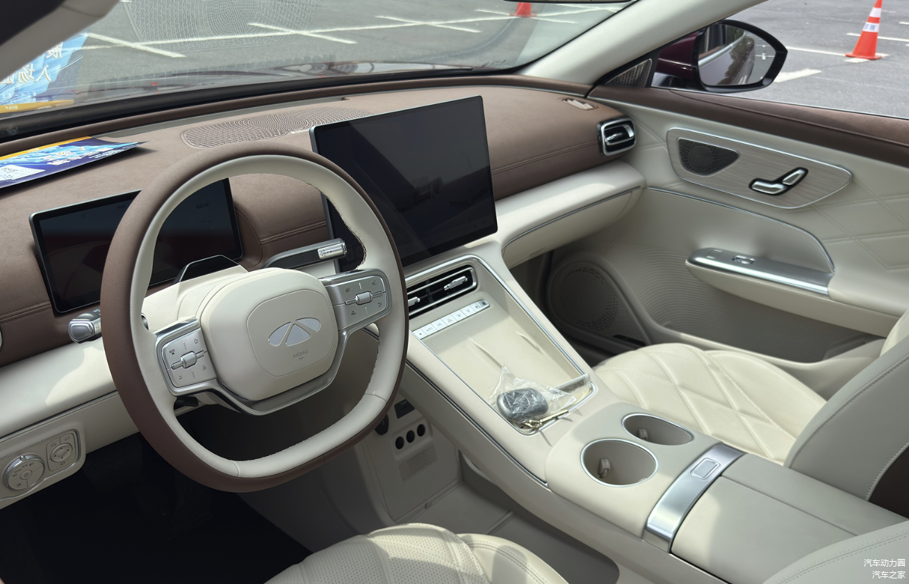 内部设计已经得到了全面的曝光,采用的是对称样式的中控台,匹配了双悬浮大屏设计。从尺寸来看。中控屏幕尺寸达到了15.6英寸,而行车电脑屏幕尺寸为10.25英寸。据厂方的表述,这款风云A9不仅拥有记忆泊车,也拥有香薰以及主动式豪华车内氛围灯,超大的全景天幕,智能语音助手一应俱全。
