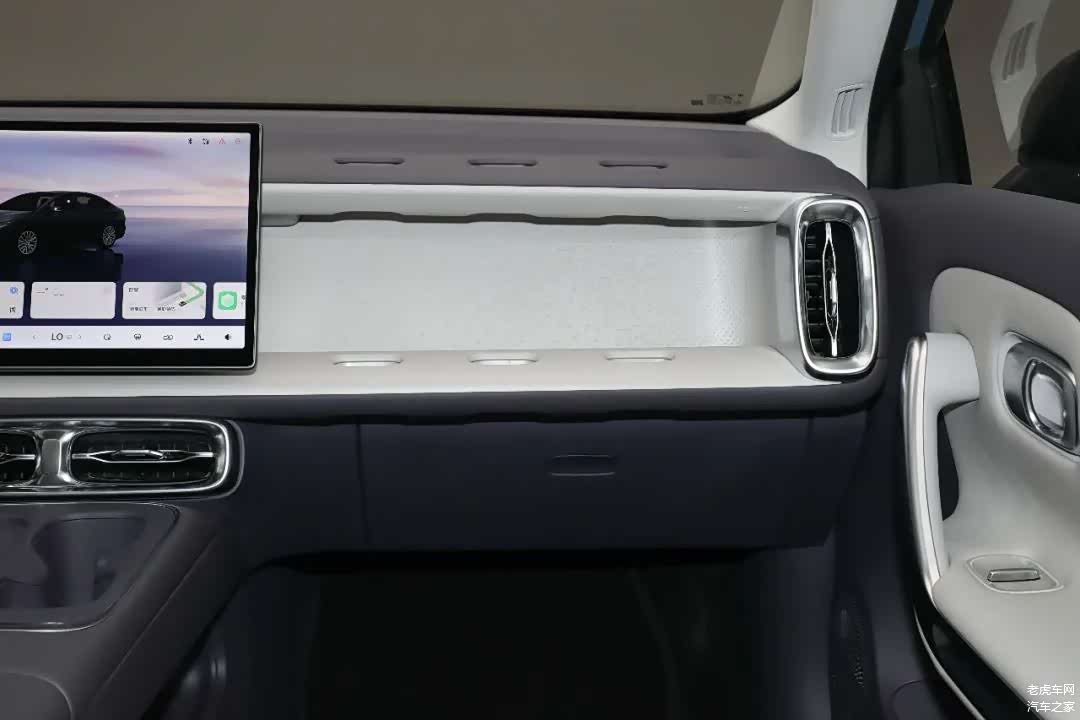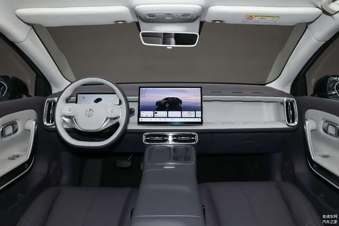 内饰部分,新车车内提供幻月紫和纤云灰两种配色方案,配置方面,新车中控台区域并未配备任何实体按键,搭载14.6英寸2.5K中控屏和8.8英寸全液晶仪表,内置高通骁龙8295座舱芯片,双辐式方向盘则内外双拼色设计,两侧配有多功能按键和滚轮,并应用了怀挡式换挡机构。