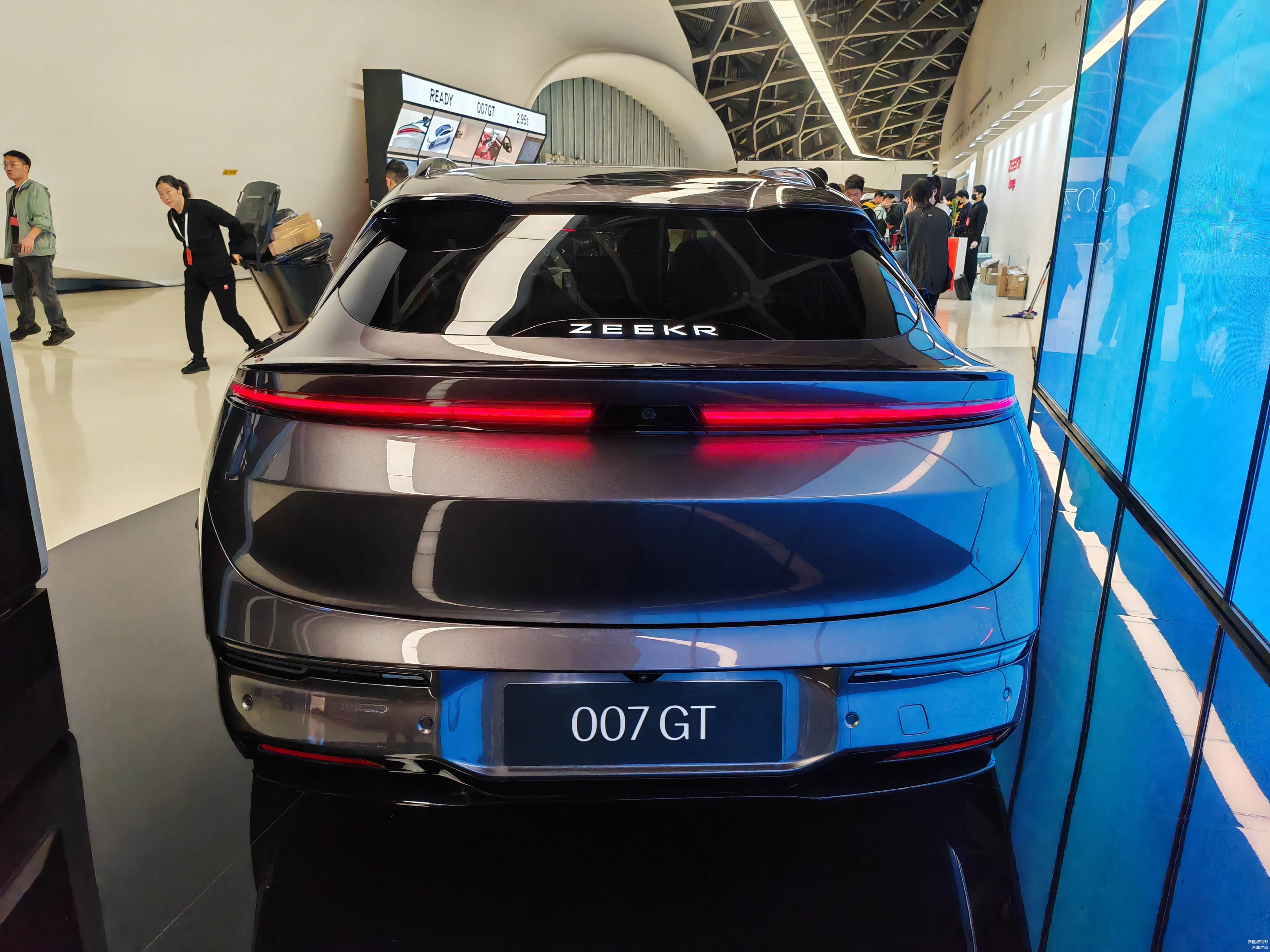 凹凸有致的尾部设计,看上去很有层次感。采用贯穿式尾灯组,并在灯带中间的上侧加入ZEEKR的发光字样,提升辨识度。