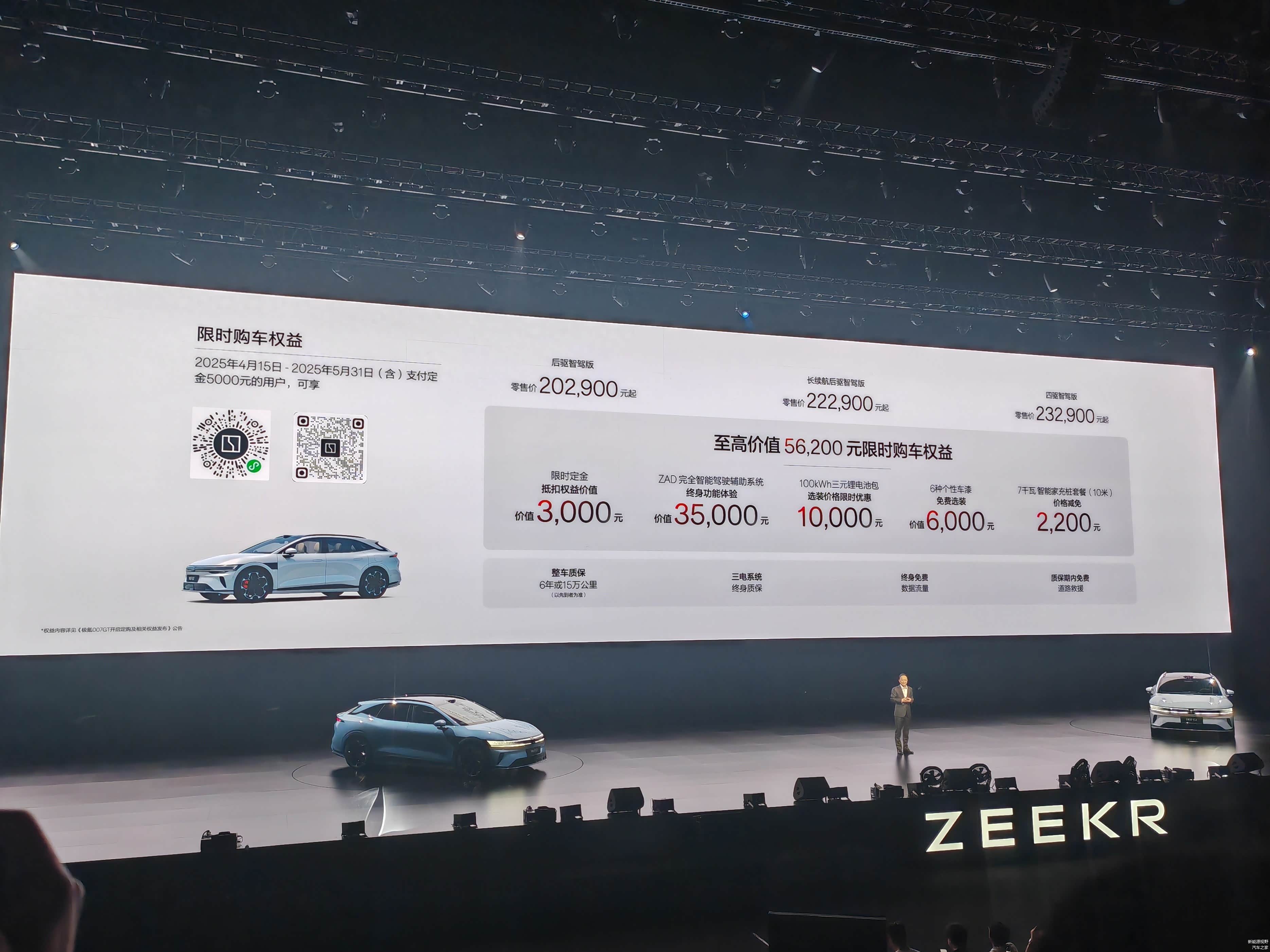 2025年4月15日极氪 ZEEKR 007 GT正式上市,新车共发布3款车型,指导售价20.29万元--23.29万元。动力上,搭载单、双电机驱动系统。