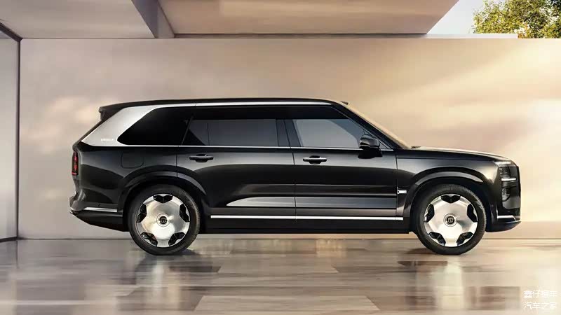 车身侧面,我们能够看到新车配备隐藏式门把手以及激光雷达,另外它还有着尺寸很大的后三角窗以及粗壮的D柱设计。轮毂方面,新车采用了豪华车常见的“大饼”轮圈,进一步凸显豪华感。