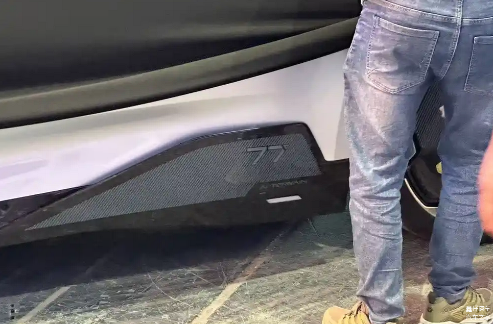 侧面线条流畅,整车姿态贴近运动旅行车的轮廓风格。车身尺寸方面,新车较极狐T1更为宽大,具备更充足的车内空间潜力。车尾采用猎装造型,视觉重心向后延展,与整车比例形成协调统一的布局。值得注意的是,车辆中部下护板区域带有“77”字样,或暗示该车在产品序列中的代号或未来命名方向。