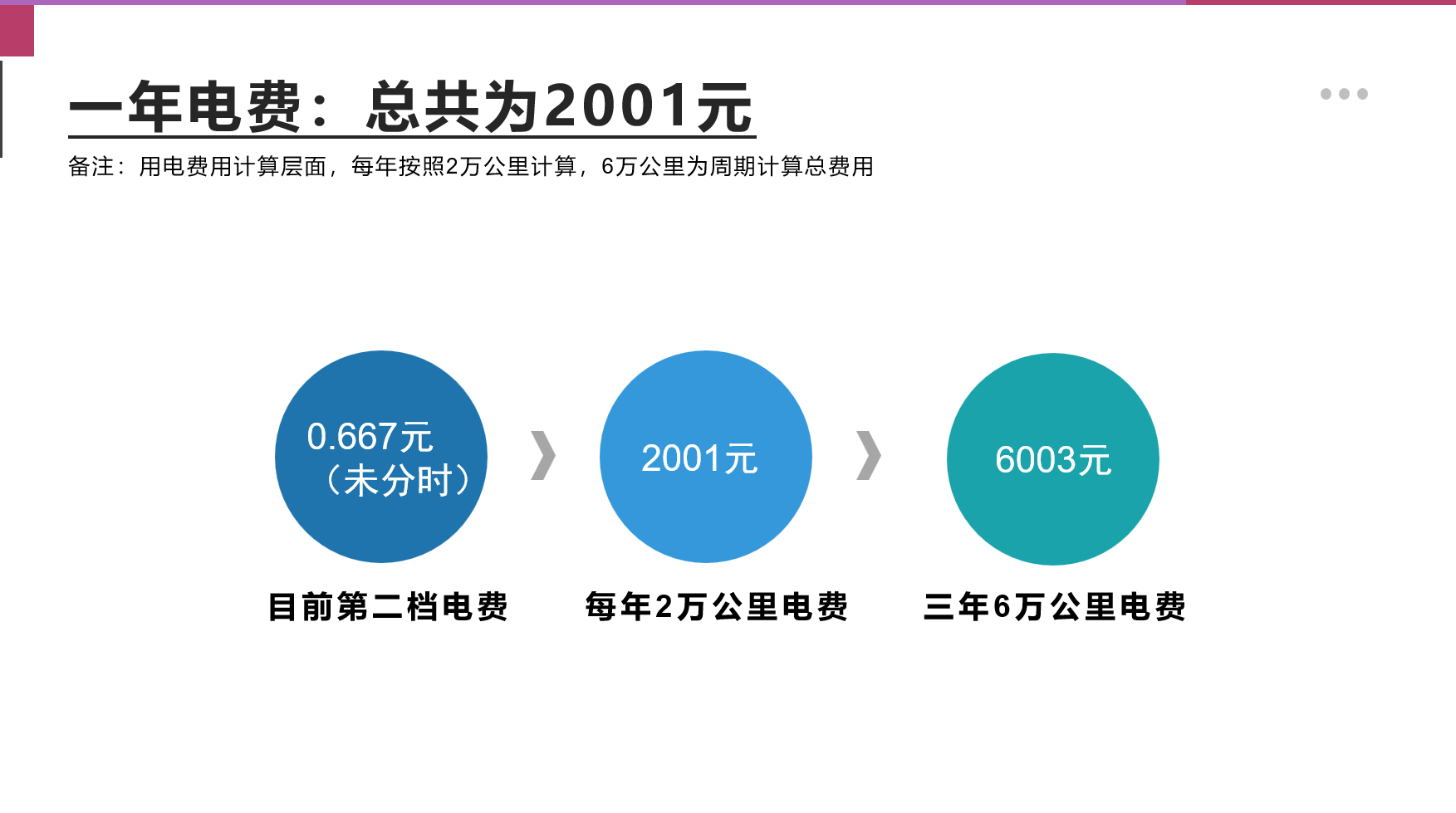 2025款比亚迪唐EV 670KM激光雷达尊享型车型搭载一块磷酸铁锂刀片电池组,电池容量为100.5千瓦时,我们以CLTC工况下续航里程670公里举例,以一年行驶20000公里计算,需要消耗约3000千瓦时电能,按照上海正常电价来计算,若是家用充电桩这个电量处于第二档3120-4800千瓦时范围里(包括家里其他电器总用电量),电费是0.667元(未分时),一年2万公里总电费为2001元,三年6万公里为6003元。当然车主还是可以根据自己需求和习惯选择在波谷时间段充电,这个价格会更低。