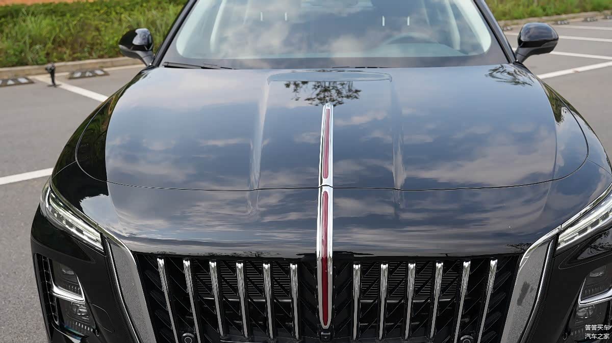 对于注重气场与设计的用户,H5 PHEV的中式美学无疑是一大加分项。红旗H5 PHEV延续了红旗H5燃油版的“国风颜值”,前脸的直瀑式格栅由12根镀铬条构成,象征“十二时辰”与“天人合一”的理念;红色旗标灯从前格栅一直贯穿至发动机罩盖,细看会发现进一步延伸到内饰与尾部,两侧的“飞翼”大灯具有层次感。整个前脸既显对称与和谐的气质,也凸显东方大气之美。