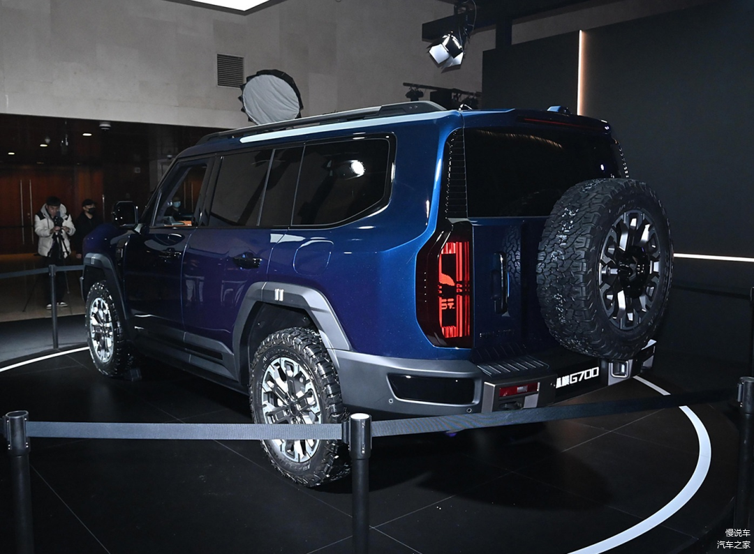 外观设计方面,G700的整体外观还是挺有熟悉感的,无论车头的造型,车侧的线条,还是车尾,特别是尾灯组的设计,你都能在捷途旅行者上找到相似的设计元素。G700的定位显然更加硬核,所以在旅行者的尾厢上的那个用来放工具的小包,在G700上变成了一个真正的,全尺寸的AT备胎。