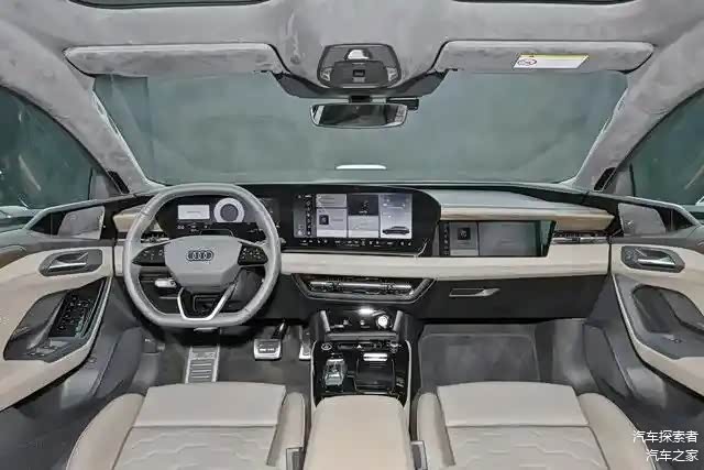 在内饰设计方面,奥迪A6L e-tron采纳了奥迪最新的家族化设计理念,这与全新C9奥迪A6的内饰布局是一致的。其控台区域配备了四幅平底方向盘和曲面双联屏,包括11.9英寸的液晶仪表和14.5英寸的中控屏,以及10.9英寸的副驾娱乐屏,这些配置确保了乘客在观看电影或其他娱乐内容时不会分心。
