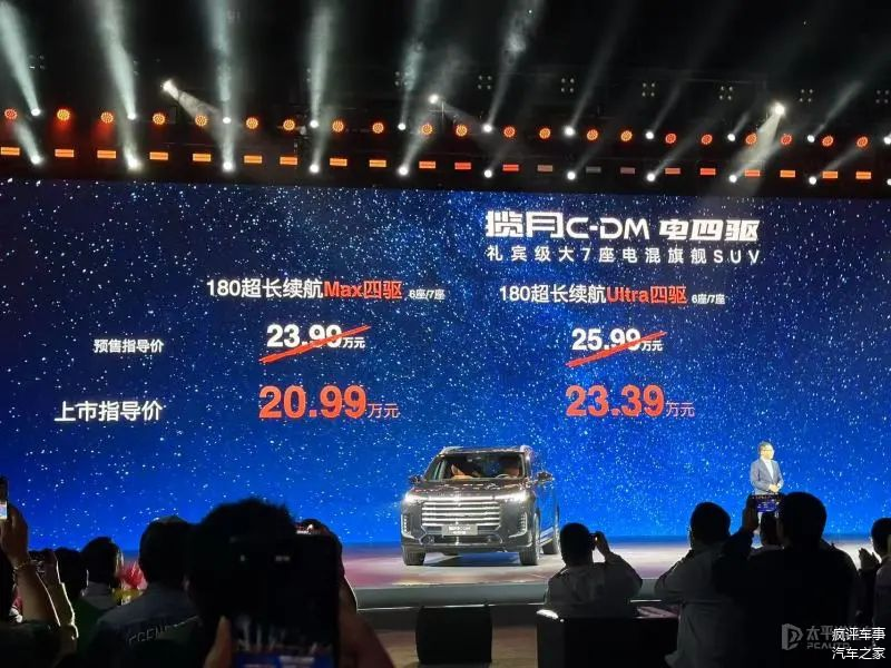 从目前市场情况来看,星途揽月C-DM将会与问界M7、理想L7以及魏牌蓝山等车型展开竞争,从价格来看,星途揽月C-DM起售价仅需20.99万元,价格上占据后发优势,同时全系标配双电机四驱系统,百公里加速时间仅5秒,综合续航里程超1300km,以更低的价格带来更好的驾驶体验,为消费者带来更具性价比的选择