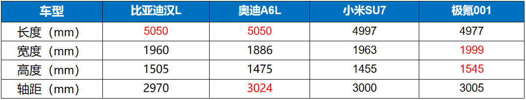 首先是大家最关心的空间,定位为中大型轿车的汉L,拥有5050x1960x1505mm长宽高, 以及2970mm轴距。