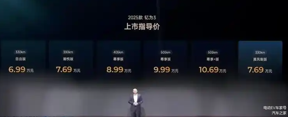 在竞争激烈的新能源汽车市场中,2025 款江淮钇为 3 于近日正式上市,为消费者带来了更多选择。此次上市的 2025 款 钇为3(图片 | 参数 | 询价) 共推出 6 款配置车型,售价区间为 6.99 - 10.69 万元,同时还新增了令人眼前一亮的黑凤梨版车型。如果有感兴趣的小伙伴,可以借此机会来了解一下。