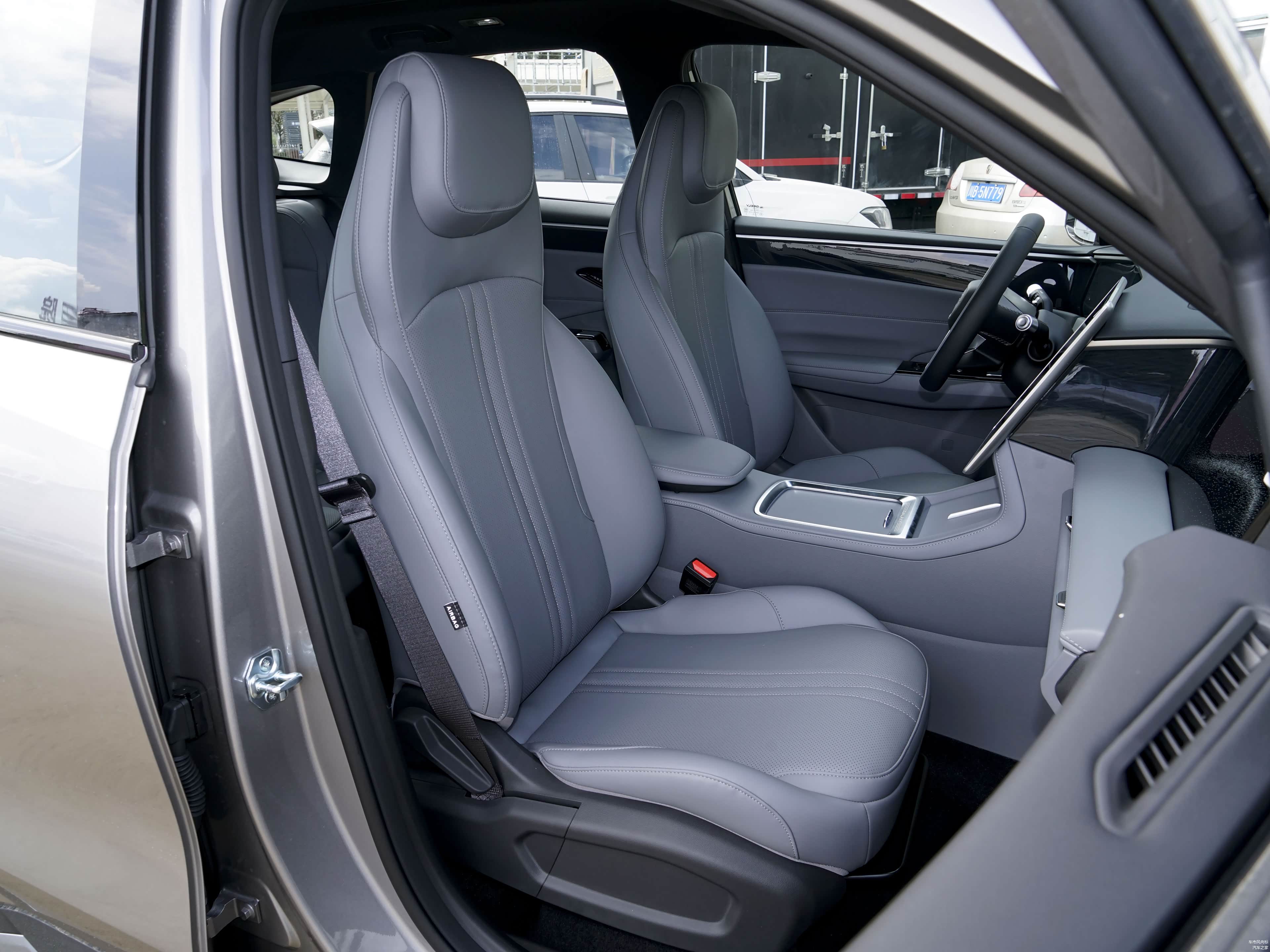 座椅是舒适性的另一大亮点。高配车型采用“七层棉花糖座椅”,记忆海绵填充层厚度达15毫米,表层打孔皮质配合通风功能,夏季长时间乘坐也能保持干爽。高配车型主驾支持10向电动调节与按摩,副驾则提供4向腿托调节,躺姿配合电动腿托,长途乘坐疲劳感大幅缓解。
