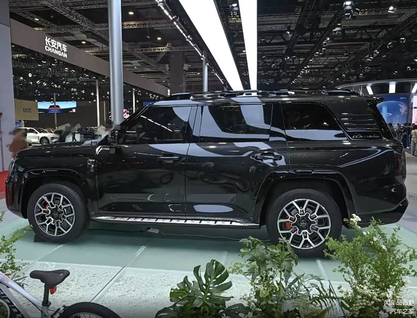 车侧一面,新车也将以一款硬派SUV的设计风格为其赋能。这让其侧颜同样有着媲美豪华全尺寸SUV的硬朗、霸气身形,且层梯式结构的D柱和高耸的前后轮眉,还能加深其侧颜的力量感。此外,虽然官方尚未给出其尺寸参数信息,但目测其车身长度有可能接近,乃至是超过5米。