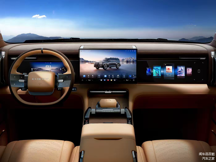 内饰部分,参考官图,瑞虎9L的内饰也会延续其外观的硬朗风格设计,并以内嵌式全液晶仪表和副驾驶娱乐屏,搭配悬浮式大尺寸中控屏以及横推式电子挡把,来加深其车内的科技感。据悉,新车将搭载3nm座舱芯片以及由激光雷达加持的自研“猎鹰700”高阶智驾系统等。
