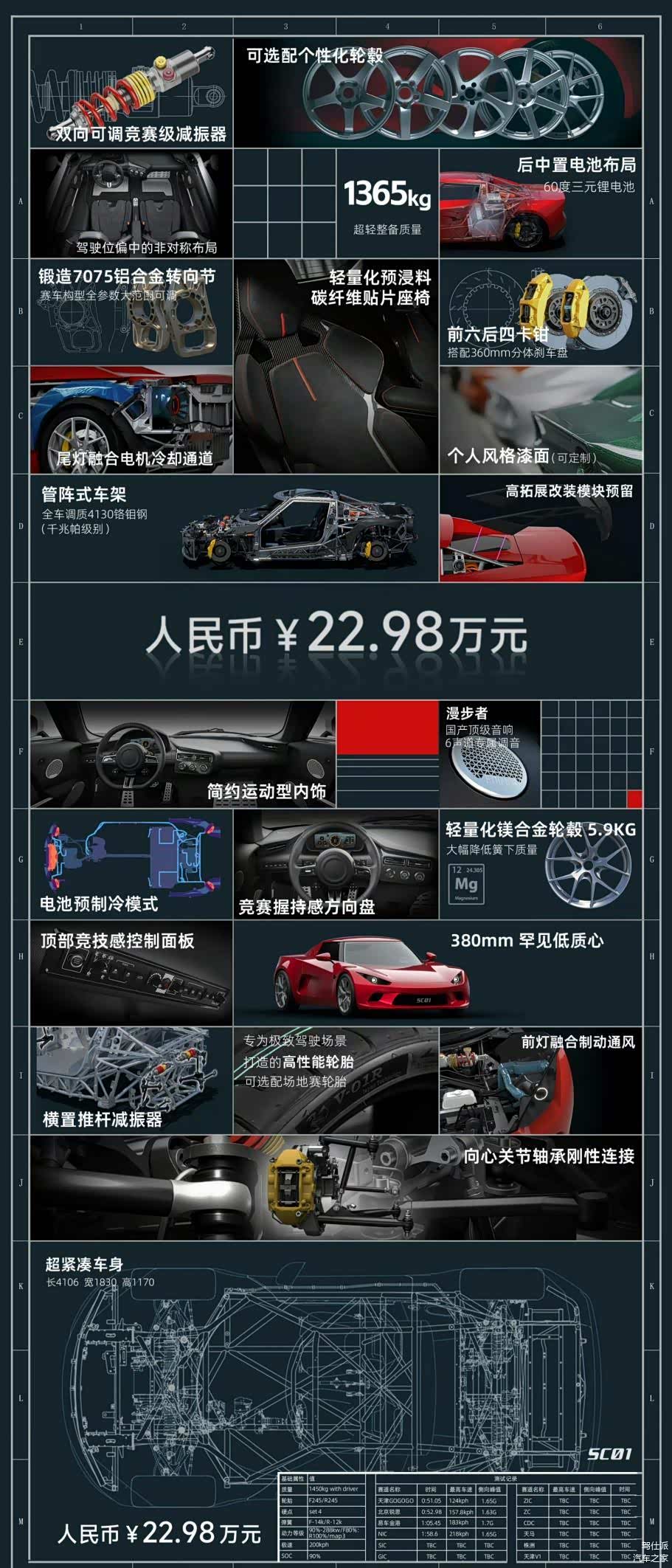 售价22.98万元的小跑车SC01(工信部-羿驰01)配合1365kg的整备质量,是什么概念?售价90.28万元的莲花跑车EMIRA 2.0T动力只有405马力,不及SC01的435马力,而且EMIRA车重还有1405kg。