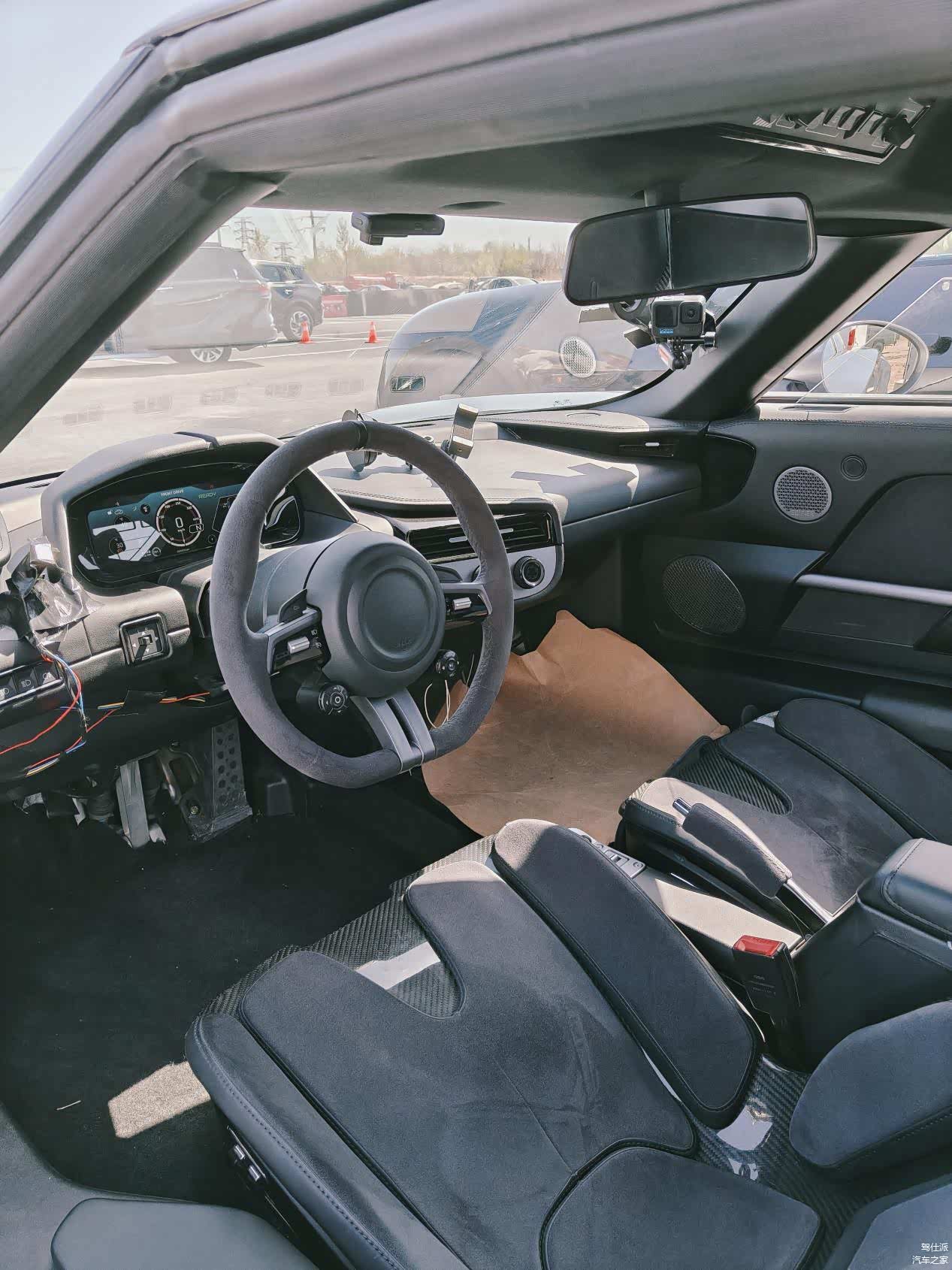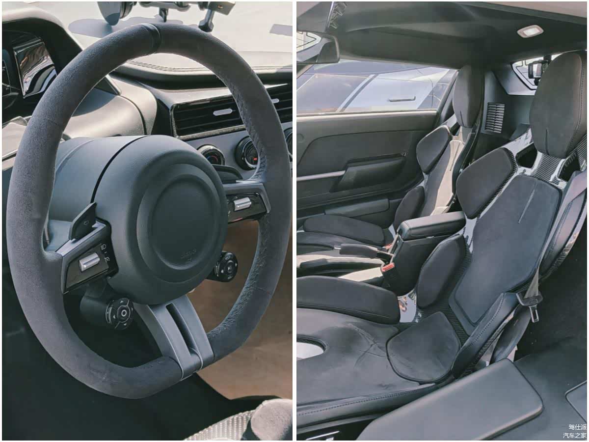 很巧的是,我在4月初北京金港赛道见过正在测试的工程实车,除了测试车的钣金件还有调整的空间外,整车的完成度也令人惊讶,特别是车内的顶部控制面板,简约但不简单,去掉一切干扰驾驶的多余信息,没有中控屏只有液晶仪表,法拉利296也是如此。