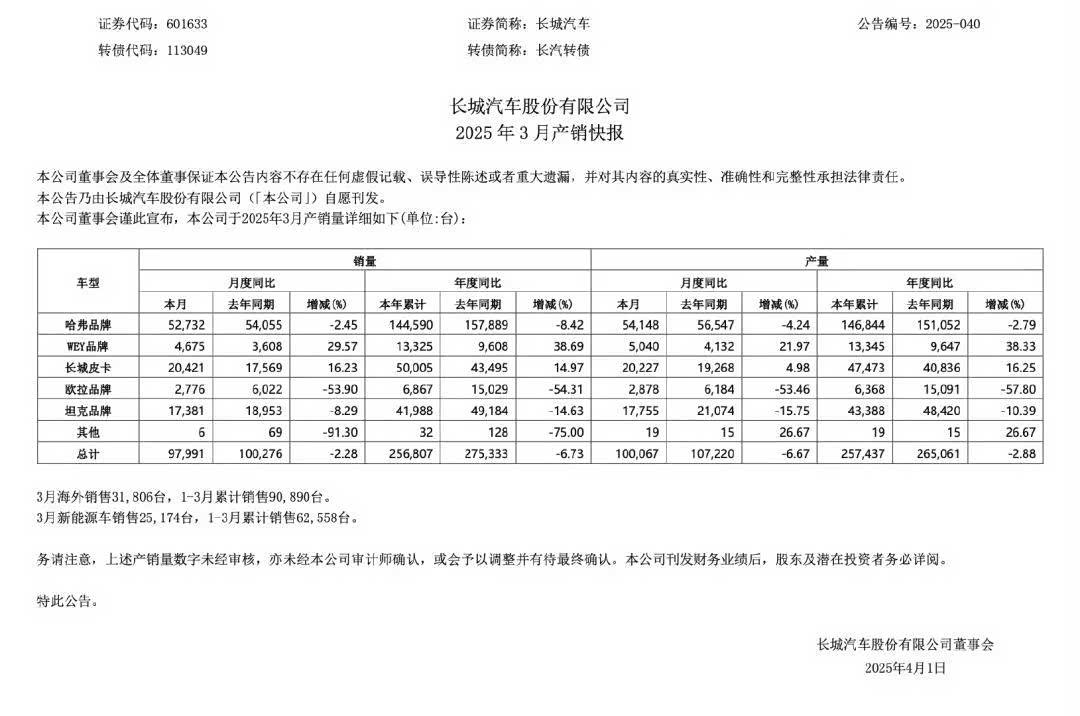 欧拉作为长城汽车旗下专注于新能源领域且主打女性市场的品牌,从去年以来销量一直都不太起眼。数据显示,3月欧拉品牌的销量为2,776辆,与去年同期相比下降53.90%;今年累计销量6,867辆,同比下降54.31%。去年欧拉全年销量仅为6.33万辆,同比下滑41.69%。在2024年8月,长城董事长魏建军曾说,欧拉黑猫、白猫电动车,曾经月销两万多台,但每卖一台车就亏损13000元,一个月亏2.6亿元,一年亏损就是26亿元以上,所以长城最后选择停产。