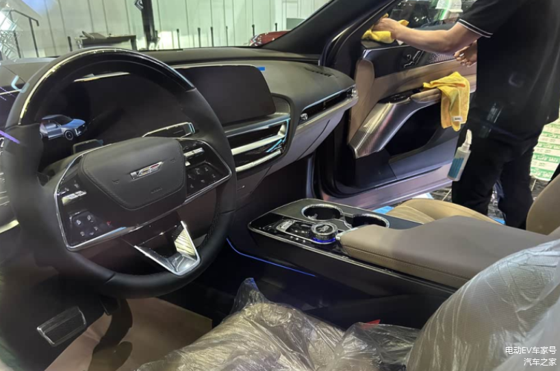 步入车内,IQ 锐歌 - V 采用黑棕双色的车内配色,营造出奢华且温馨的驾乘氛围。全新造型的方向盘成为内饰的一大亮点,方向盘中央的凯迪拉克品牌标识更换为 V 标识,彰显其高性能的定位。该方向盘配备丰富的功能按键,除了常见的驾驶辅助系统、定速巡航和方向盘加热按键外,还新增了红色 V-Mode 驾驶模式按键。当启动该模式后,车辆会在转向、悬架和制动反馈等方面呈现出性能取向的调校,同时还伴有模拟声浪,为驾驶者带来极致的驾驶激情。车内还配备了 33 英寸的大屏幕,预计搭载专属 V 系列显示界面,配合凯迪拉克 Super Cruise 组合辅助驾驶系统以及带有杜比全景声的 23 扬声器 AKG Studio 音响,为驾乘者打造出智能、舒适且充满科技感的驾乘空间。