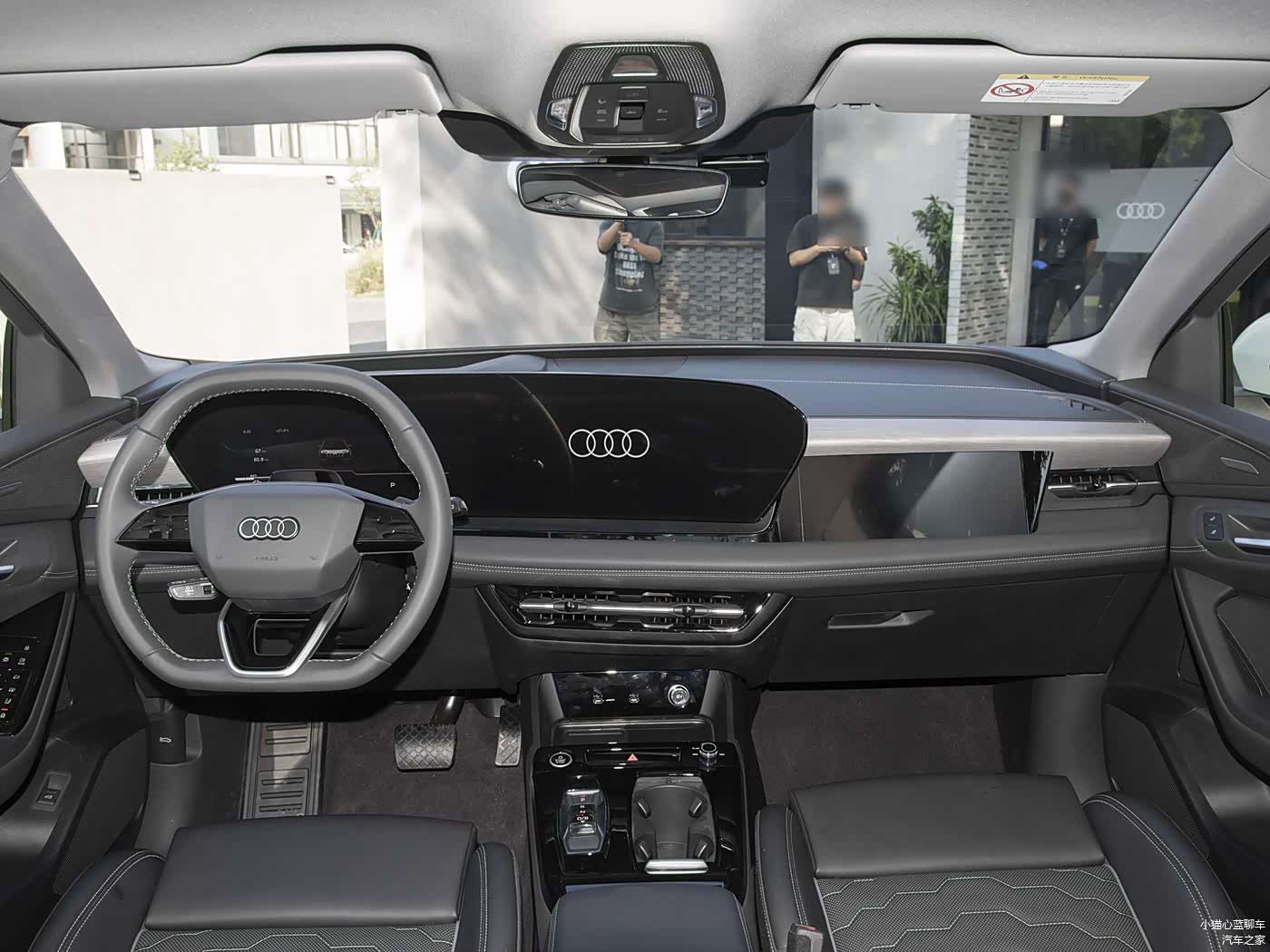 内饰方面,国产奥迪Q6L e-tron采用奥迪品牌最新的家族化设计,很注重科技感的营造,配备11.9英寸液晶仪表盘和14.5英寸MMI触摸中控显示屏,副驾驶前方还可以选配10.9英寸娱乐显示屏,即便是和自主品牌车型比拼“车内大彩电”也并不处于下风。新车采用三辐平底式方向盘,配合小巧的换挡模块,带来内饰精致感的提升。