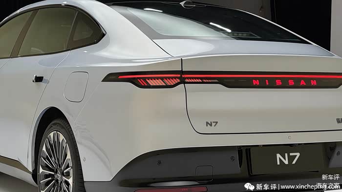 车尾部分,日产N7采用时下流行的贯穿式尾灯设计,灯带中央巧妙融合了NISSAN英文车标,并提供多种点亮效果,增强了夜间辨识度。新车共提供流光银、墨海蓝、霜雪白、燕麦米、曜石黑、森野青六款车漆选择,满足不同消费者的个性化需求。