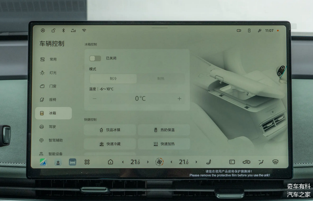 内部,采用了科技与豪华相结合的设计风格,车内有大量的软包覆盖,物理按键并不多。同时,配有15.6英寸2.5K悬浮中控屏和10.25英寸仪表盘,搭载了高通骁龙8295P芯片(MAX版),支持四区音控、手机远程控制、手机互联、面部识别等功能。256色光瀑式氛围灯,搭配14扬声器音响系统(选),再加上智能双温域冰箱(选),增强了氛围感和便利性。