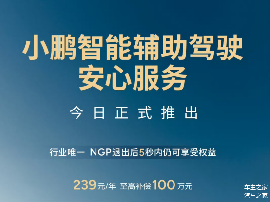 就在今天上午,小鹏推出了自己的智能辅助驾驶安心服务,作为商业险的补充,它的服务费为239元/年,最高赔偿100万元,可覆盖行车和泊车的全场景,赔付次数不限,而且小鹏旗下全车系均可享受该项服务,而且NGP退出的5秒内仍可享受服务权益,这波做法很值得点赞,而且保费还便宜,每年续也不心疼。