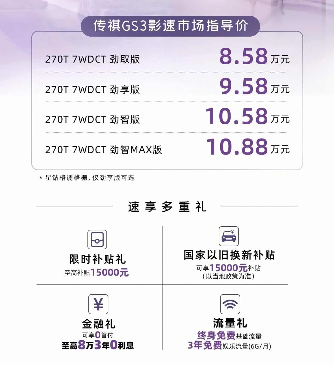 为提升竞争力,新款GS3影速推出限时购车政策: