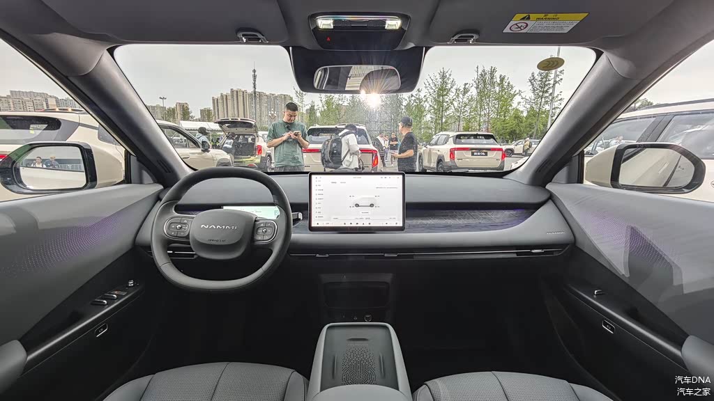进入车内,纳米06延续了纳米01温馨精致简约的内饰风格,可以提供有智灰、放青松和好有米三种内饰配色。搭载8.8英寸内嵌式超宽液晶仪表+12.8英寸高清悬浮中控屏,内置8155高通骁龙高性能芯片,支持语音交互、OTA升级及丰富的车载应用。另外还配备双辐式方向盘、50W手机无线快充,以及怀挡设计。