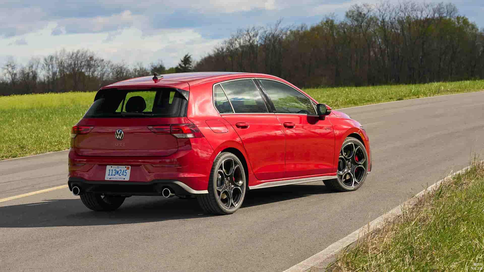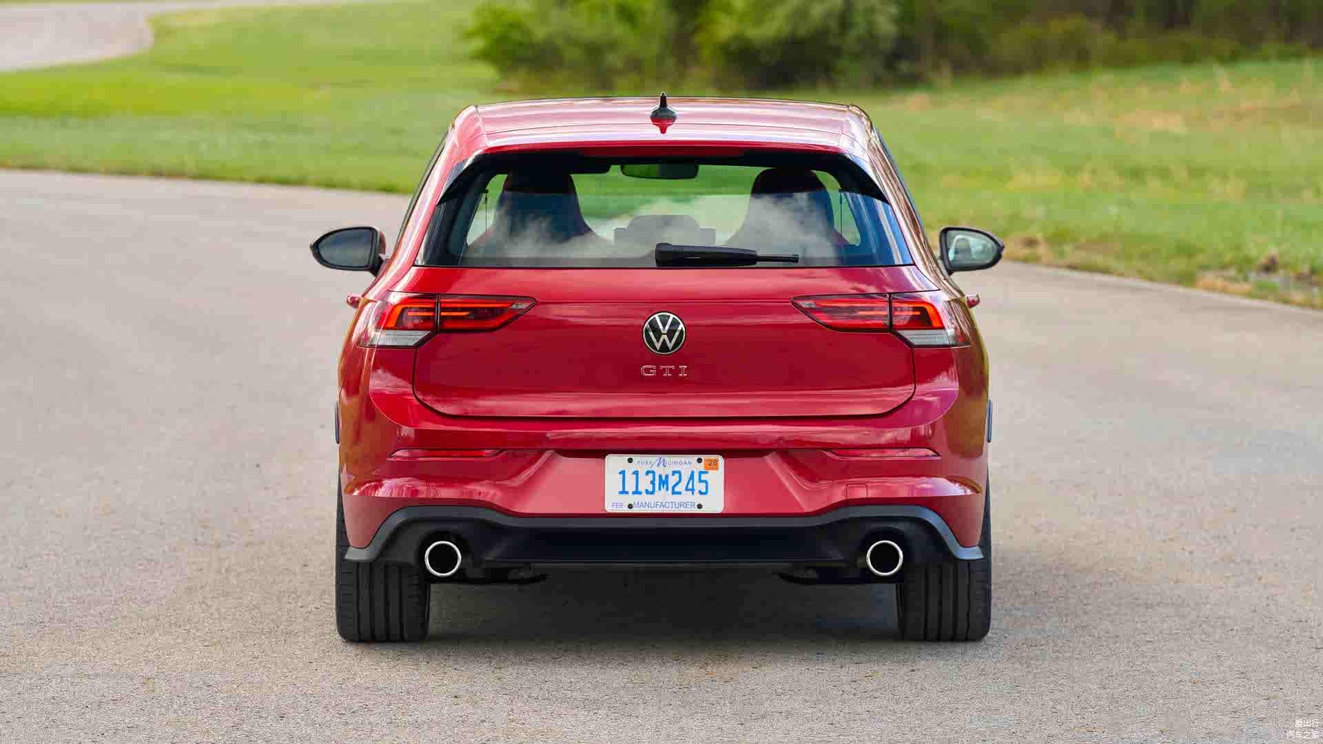 车身侧面,GTI标志性的双腰线设计得以保留,但通过降低车窗下沿高度(较普通版降低10mm)与缩短前悬长度(缩短5mm),进一步强化了低趴姿态。19英寸“Austin”旋风式轮毂为海外版专属配置,搭配红色刹车卡钳,视觉张力与制动性能兼得。车尾部分,黑色扰流板尺寸克制,但通过优化空气动力学通道,使高速稳定性提升8%。大众车标下方新增“GTI”字母标识,双边共两出排气采用梯形镀铬尾喉,排气声浪较前代车型降低3分贝,兼顾日常驾驶舒适性。