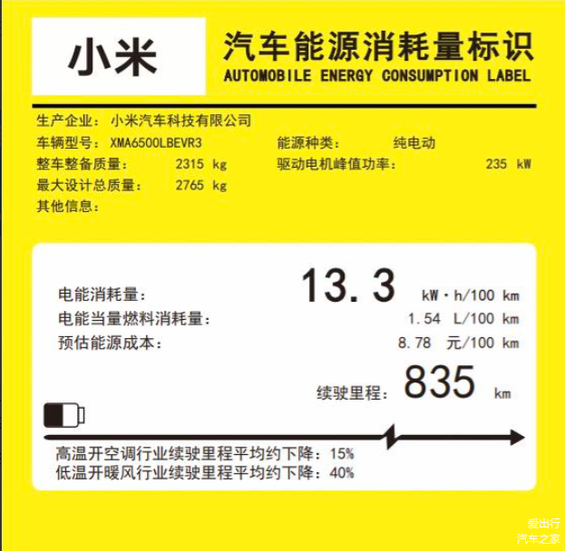 续航能力上,小米YU7将提供96.3千瓦时和101.7千瓦时两种不同规格的电池组供消费者选择。单电机车型预计会匹配96.3千瓦时电池组,根据不同的轮辋规格和测试工况,续航里程可达725公里至835公里不等;四驱车型则预计匹配101.7千瓦时电池组,续航里程同样会因轮辋规格和测试工况的不同而有所差异,大致在670公里至760公里之间。