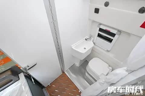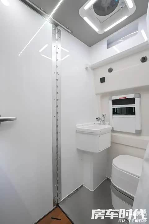 整体采用了欧系侧开门固定式卫生间框架(进口铝合金型材),内部选用了不锈钢底池与防腐防滑板,配置有ABS材质防潮防霉洗手台盆、不锈钢毛巾架、防潮板组合柜、22V防水电源插座、抽拉式电镀淋浴花洒以及便携式马桶,卫浴设施齐全。
