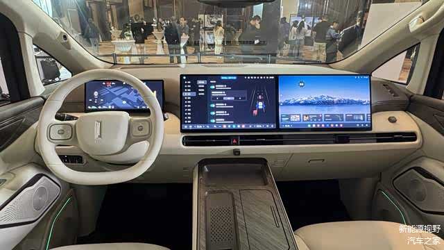 内饰方面,新车与现款内饰设计保持一致,中控台采用12.3英寸全液晶仪表盘,搭配双15.6英寸悬浮式双联屏+29英寸SR-HUD抬头显示的设计布局。配置方面,搭载高通骁龙8155芯片,内置全新一代Coffee OS 3智能座舱,触控丝滑,显示效果细腻。此外,座椅采用是2+2+3的7座椅布局。