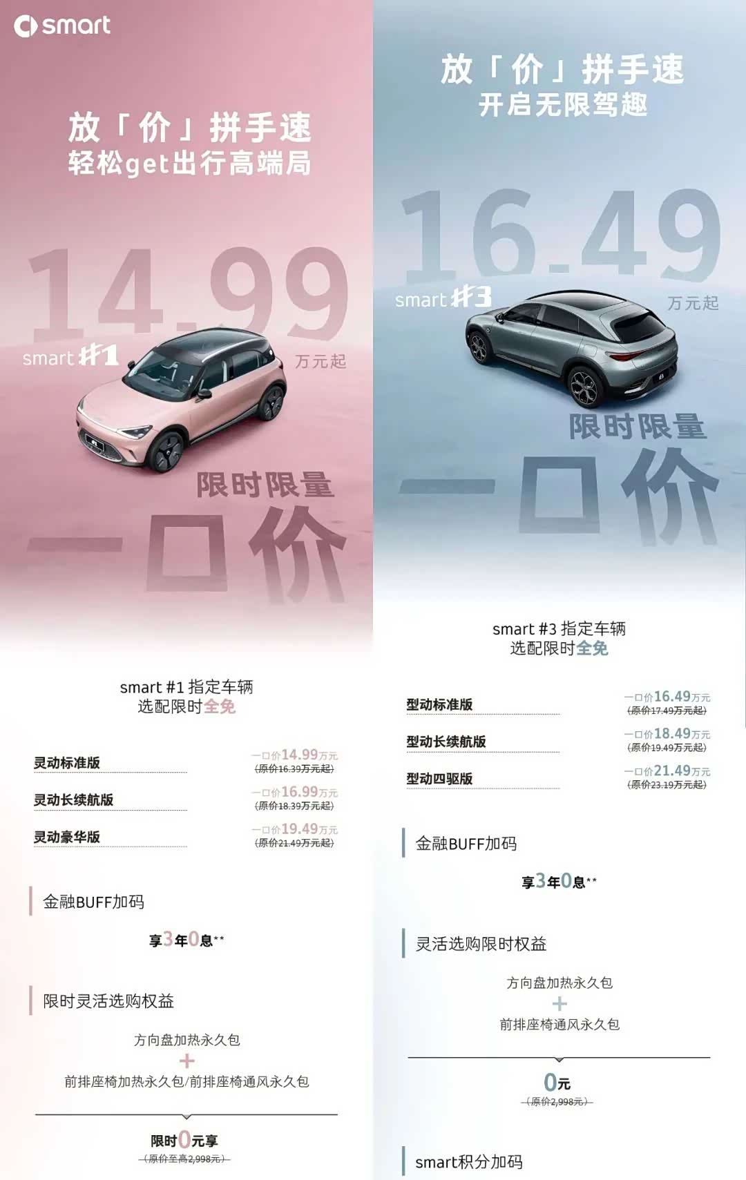 近日,smart官方推出5月限时一口价活动。其中smart精灵#1限时14.99万元起,精灵#3限时16.49万元起。